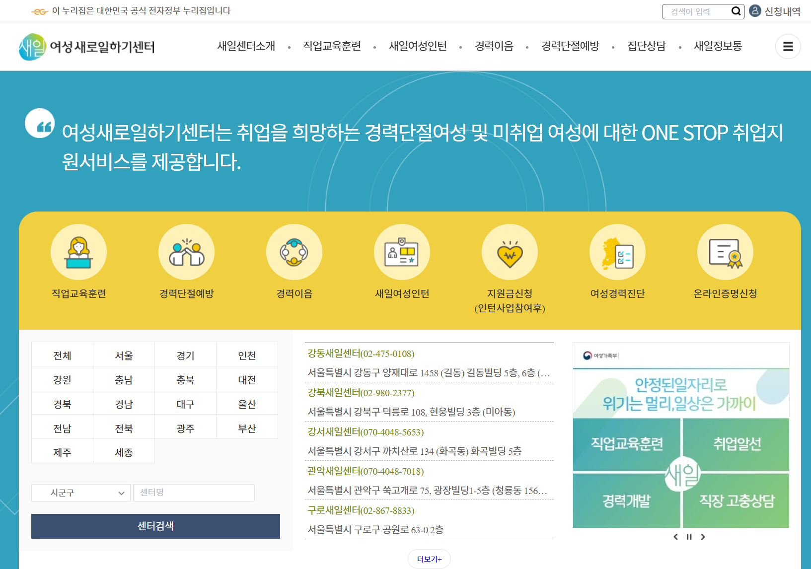 여성새로일하기센터(새일센터)에서 신청