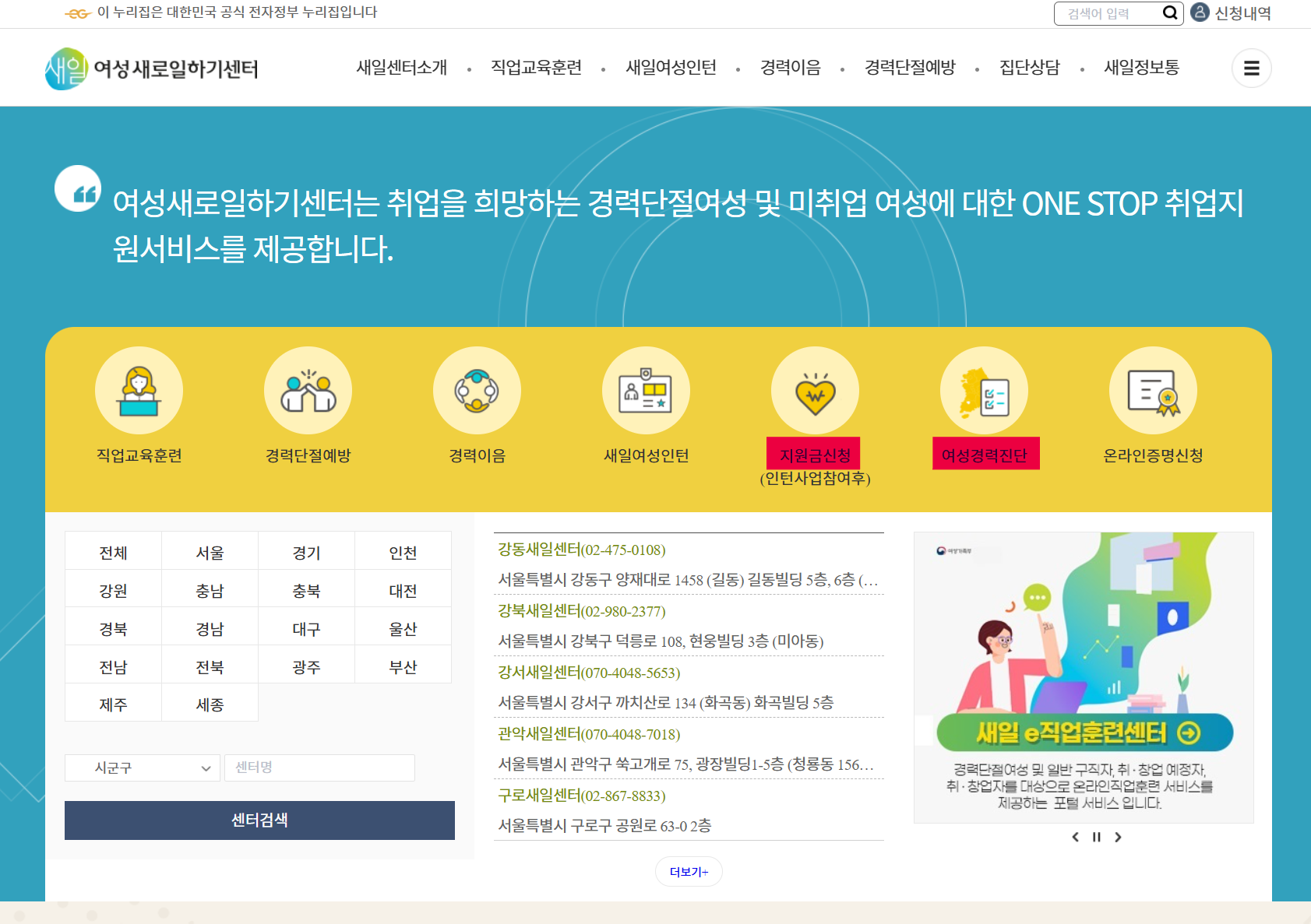 새일센터 방문 전 미리 온라인 구직 등록을 완료해두면