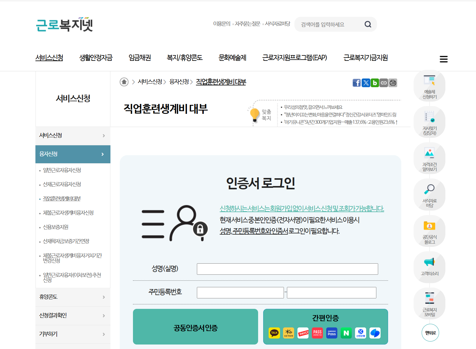 HRD-Net에서 훈련과정 등록 후, 근로복지넷에서 대부 신청
