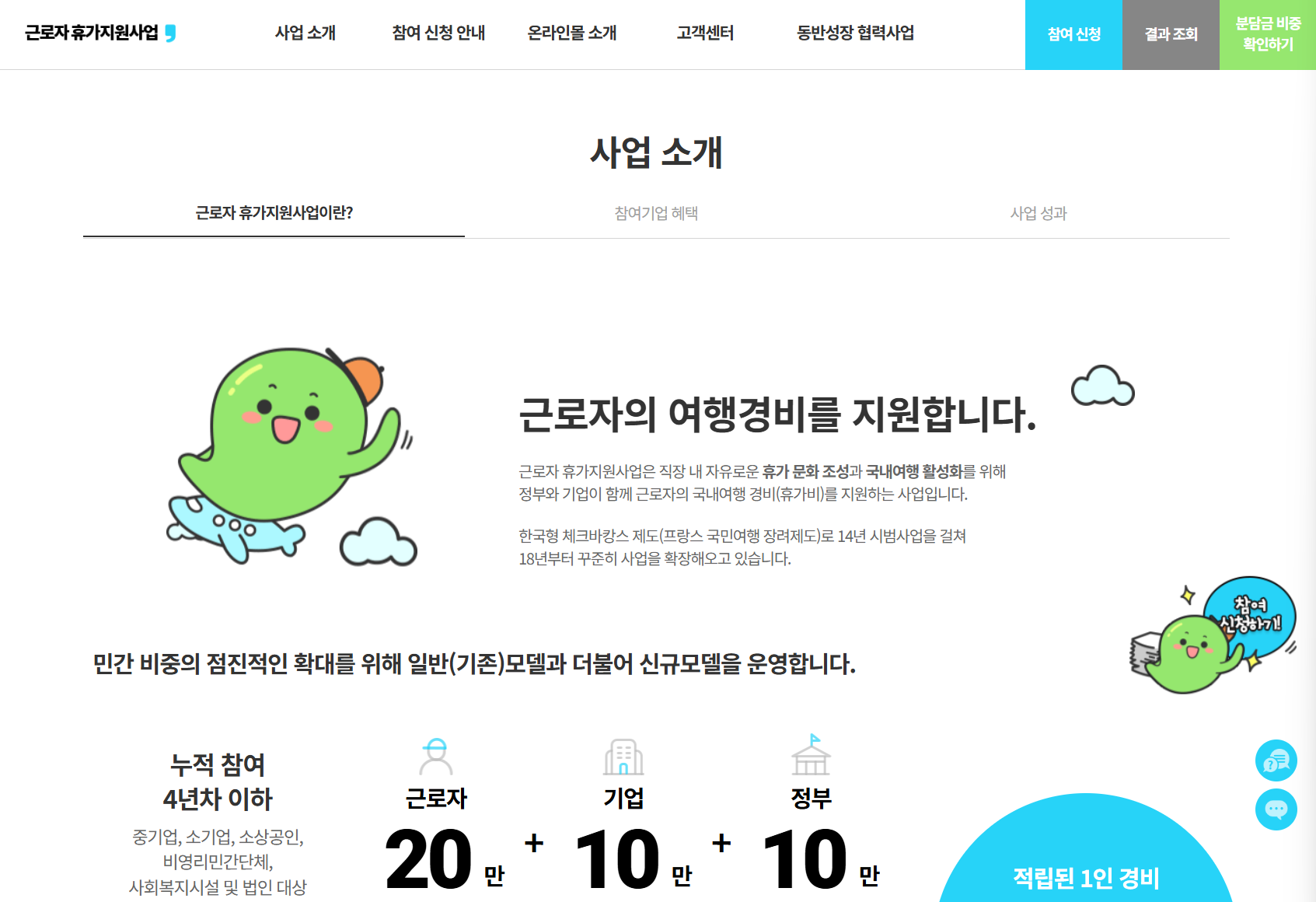 근로자가 국내 여행을 떠날 수 있도록 지원하는 제도입니다.