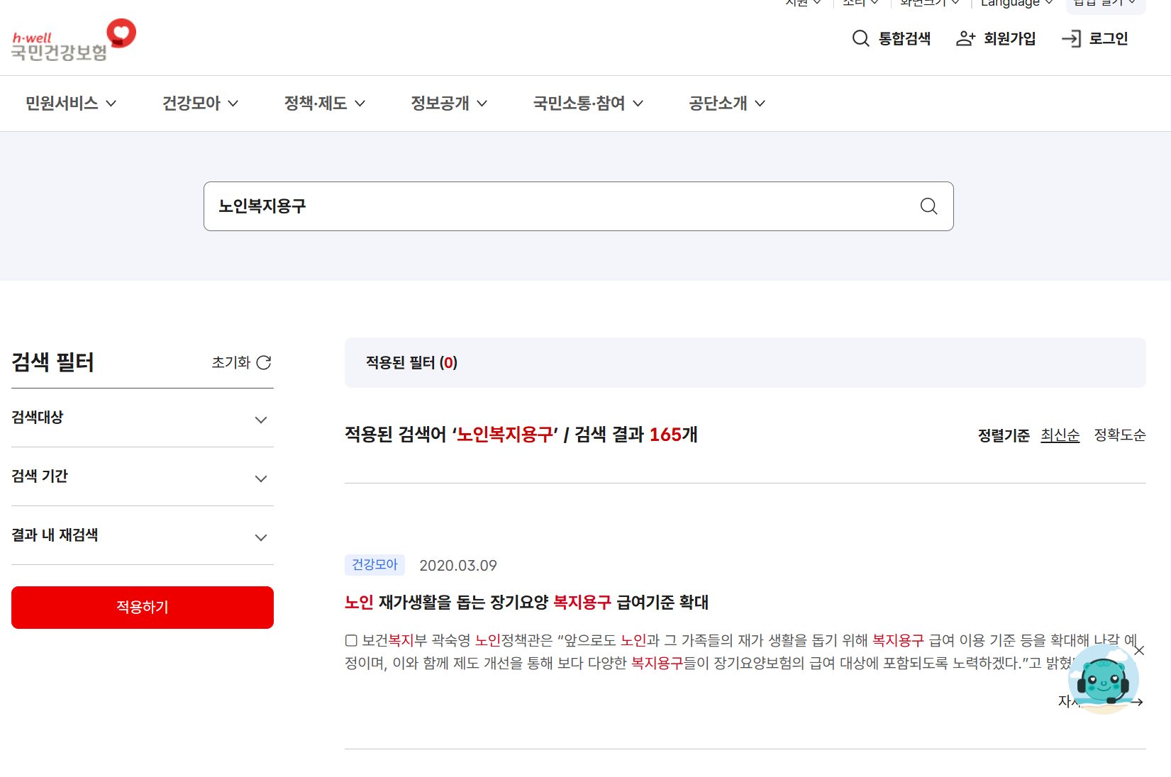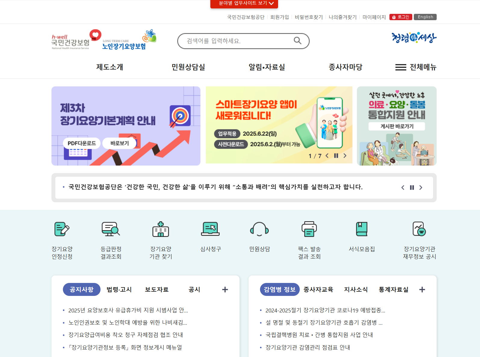 또는 장기요양보험 운영센터에서 접수 가능합니다.