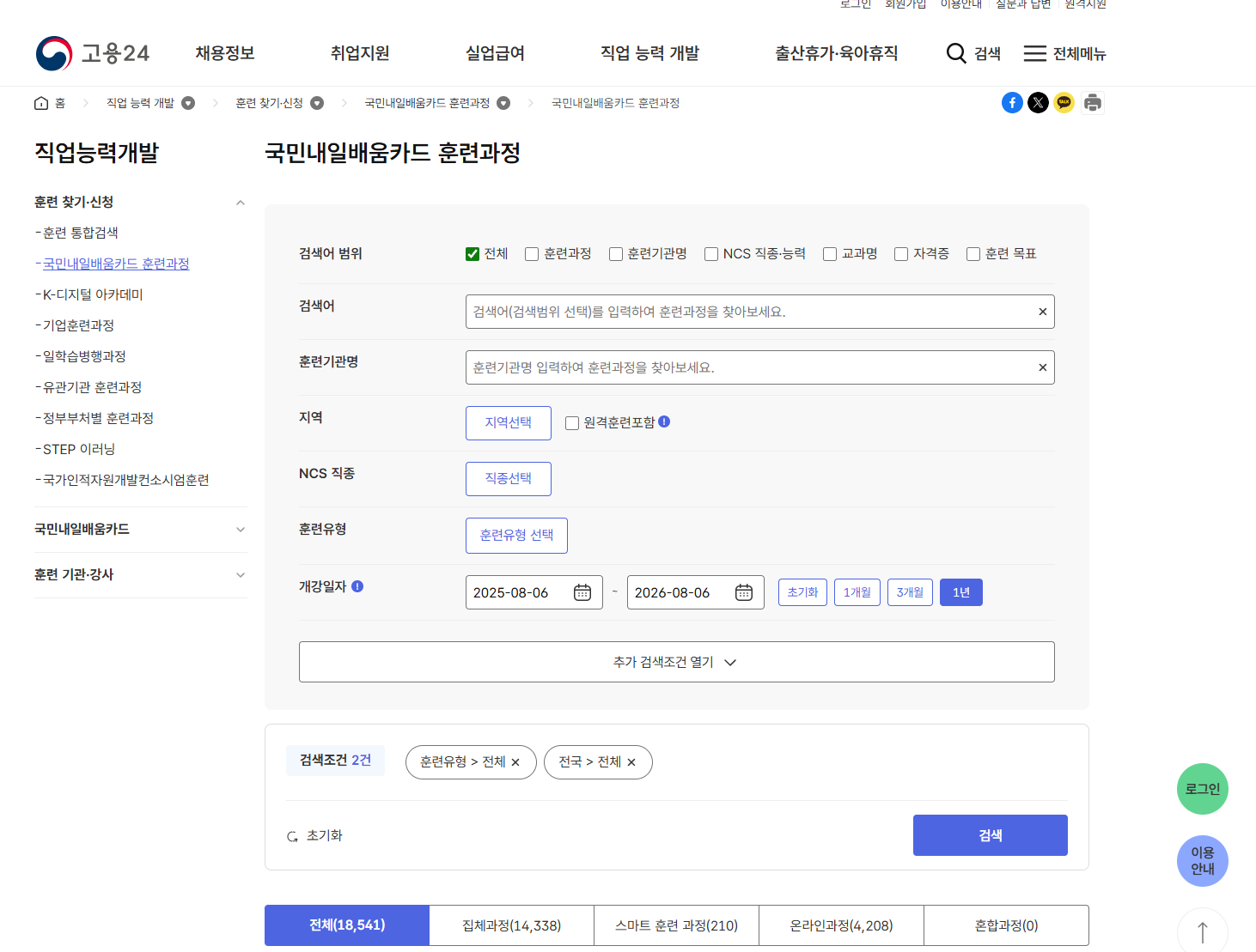 국민직업능력개발 지원제도인 내일배움카드는