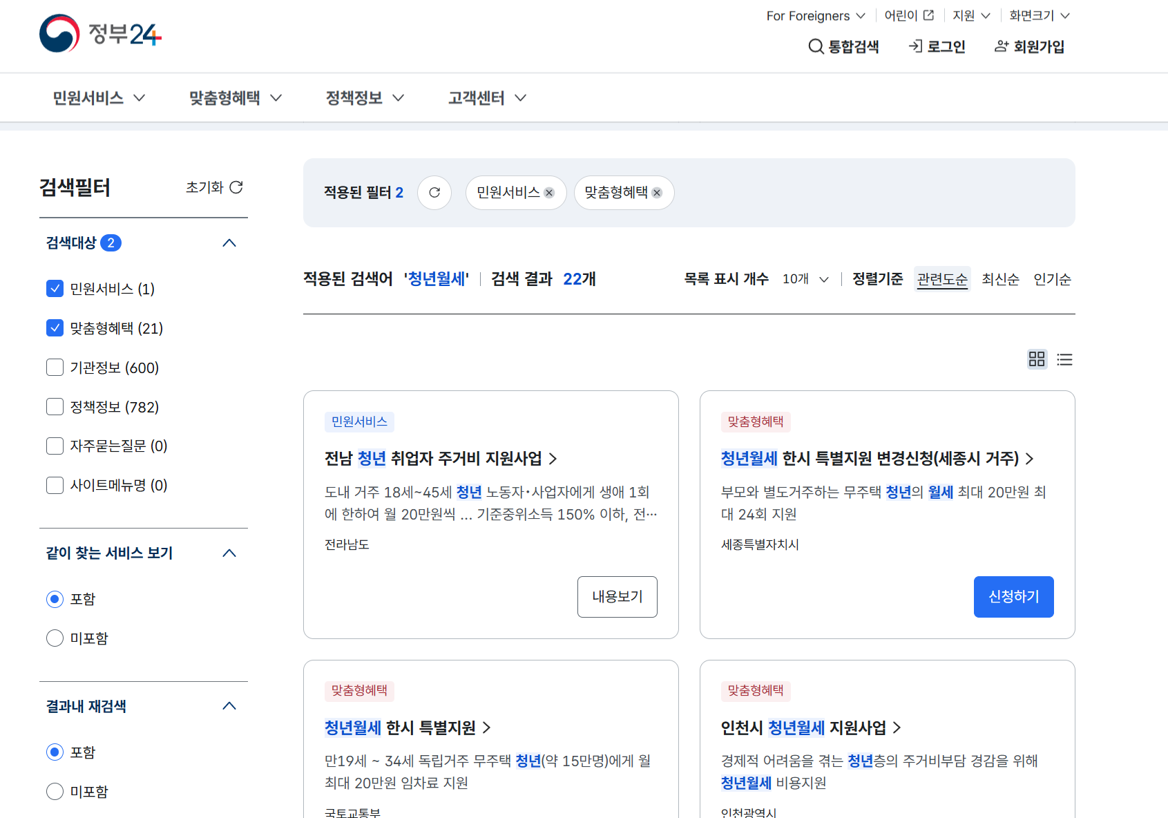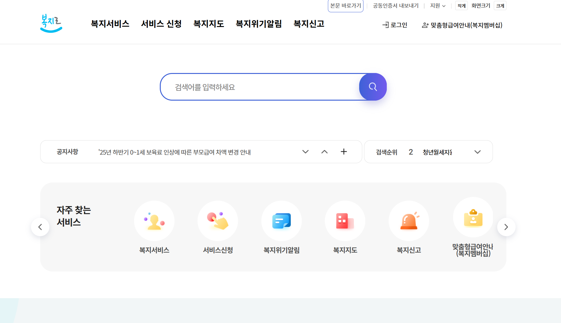 복지로또는 정부24 접속