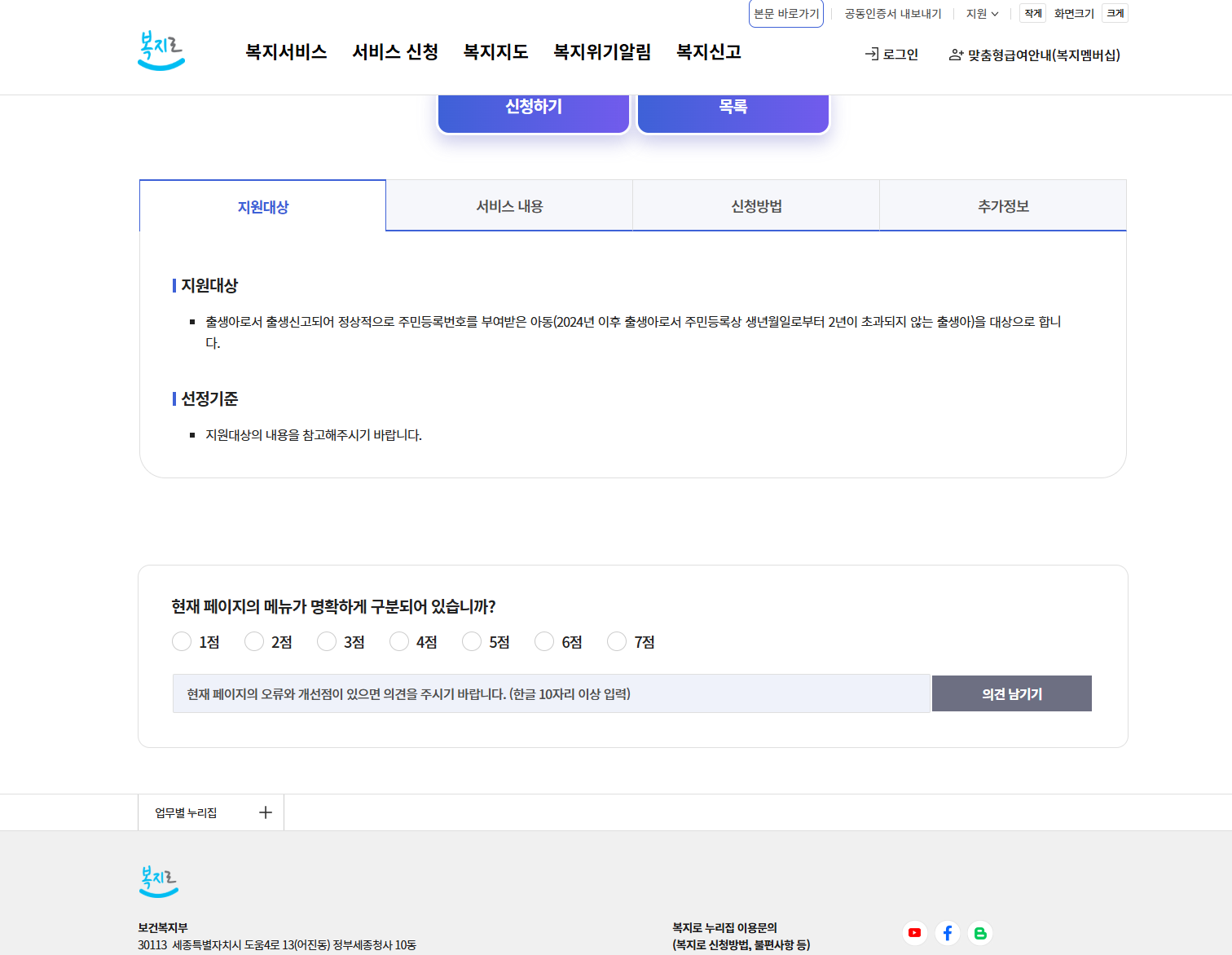 온라인 신청: 복지로 사이트 또는 정부24 누리집에서 신청 가능
