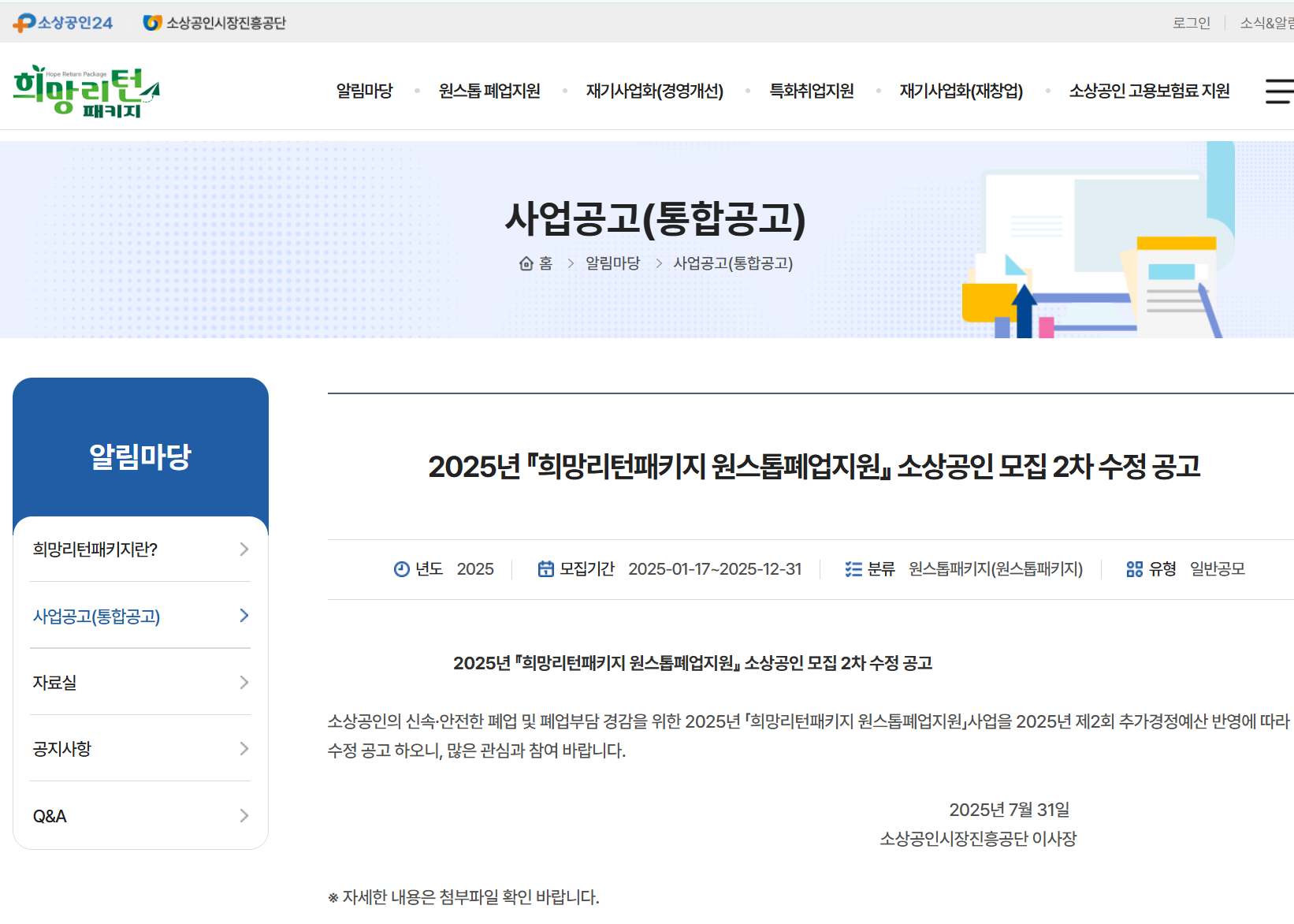 소상공인 희망리턴패키지 신청방법