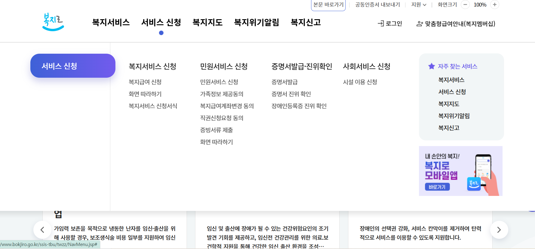 복지로 웹사이트 통한 신청