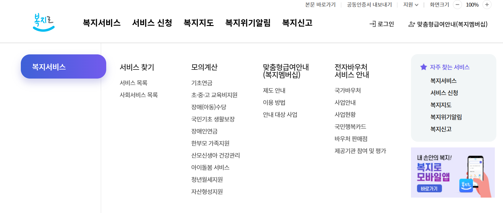 온라인: 복지로