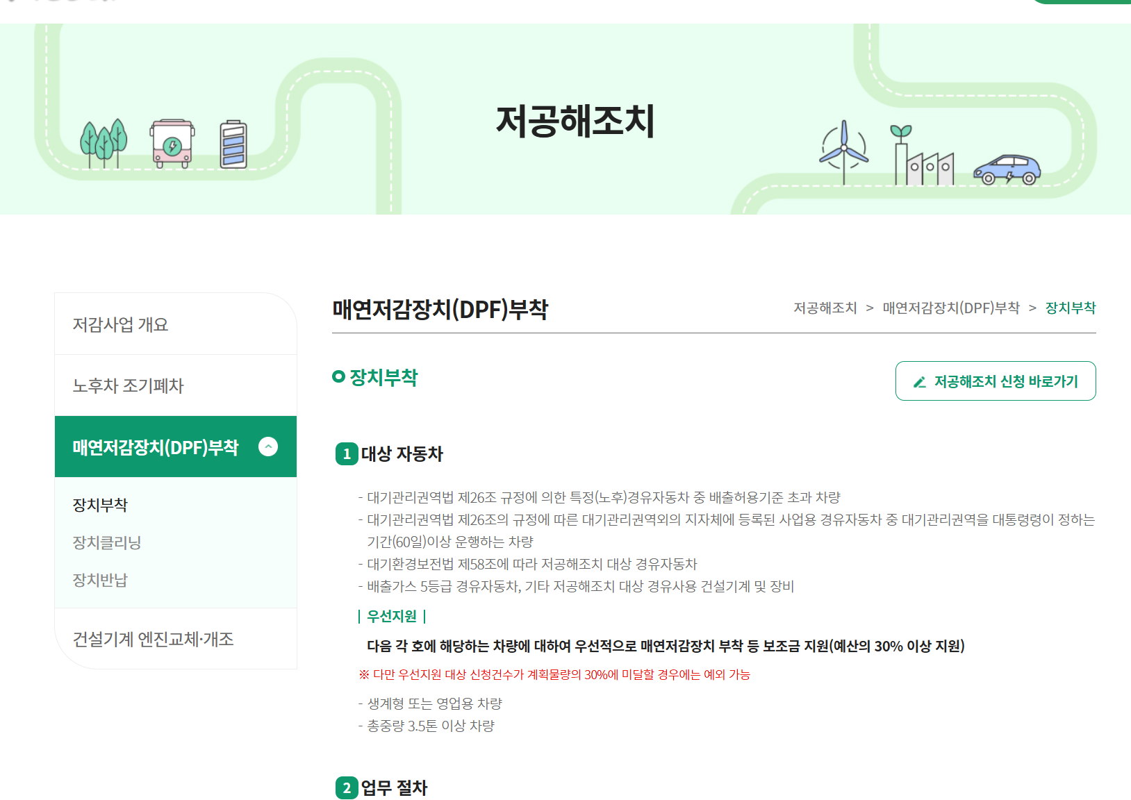 노후 경유차 폐차를 유도하고 매연저감장치(DPF) 부착을 지원하는