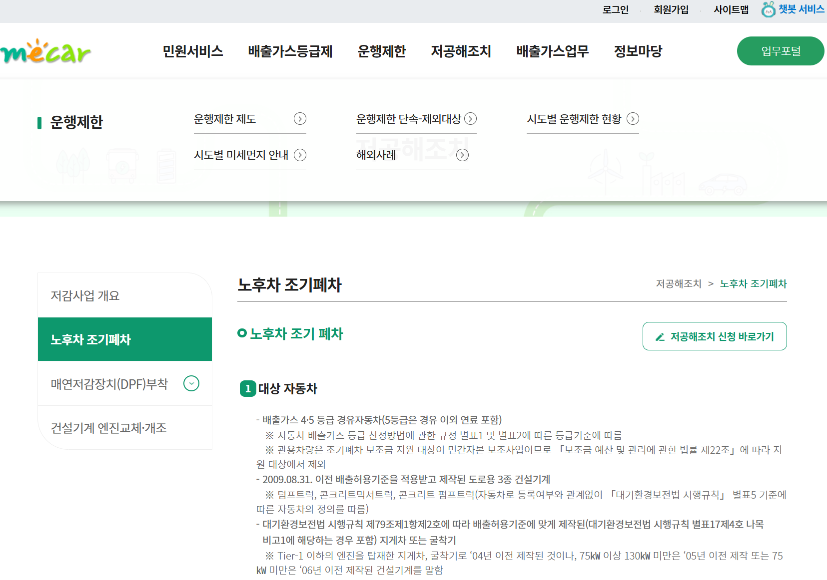 정부에서는 이 등급의 차량을 적극적으로 조기 폐차 대상으로 분류하고 있습니다.