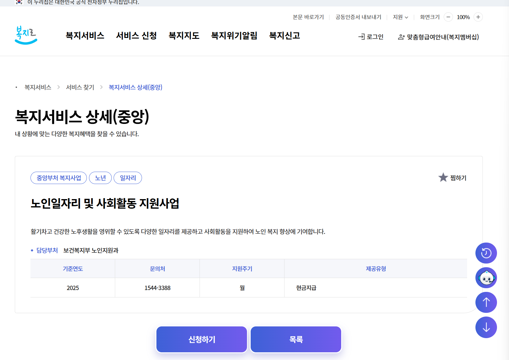 온라인으로는 복지로, 정부24, 노인일자리포털에서도 신청 가능합니다.