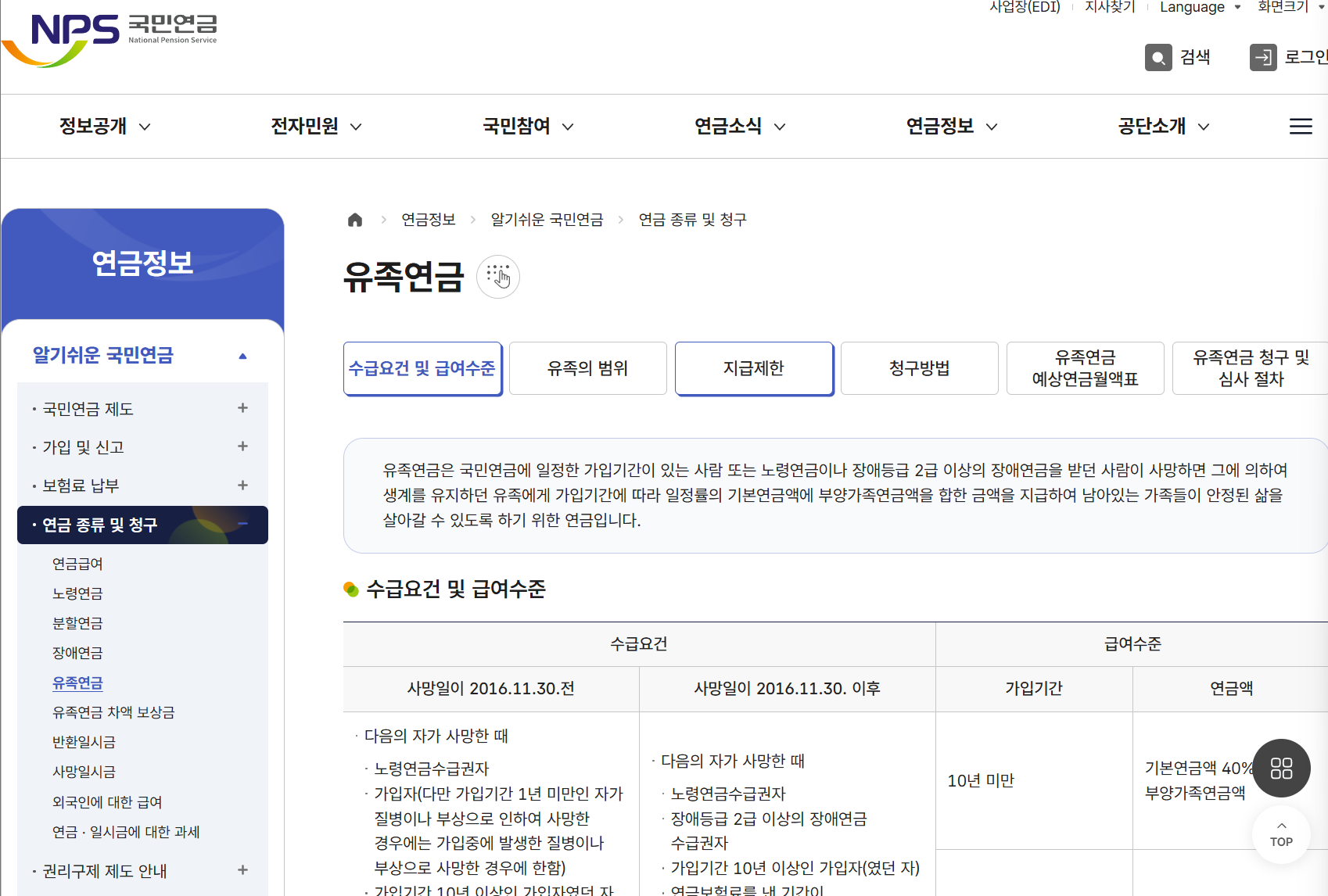 유족연금을 받을 수 있는 정확한 조건은?