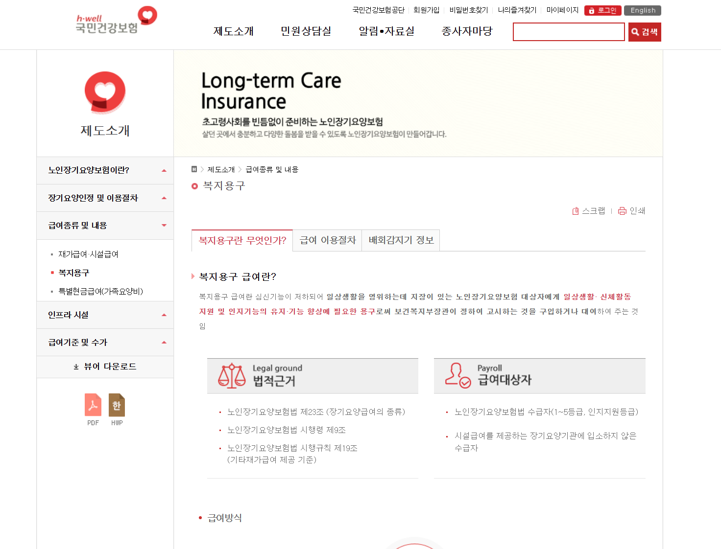 장기요양보험법에 따라 일상생활에 어려움을 겪는 어르신들에게