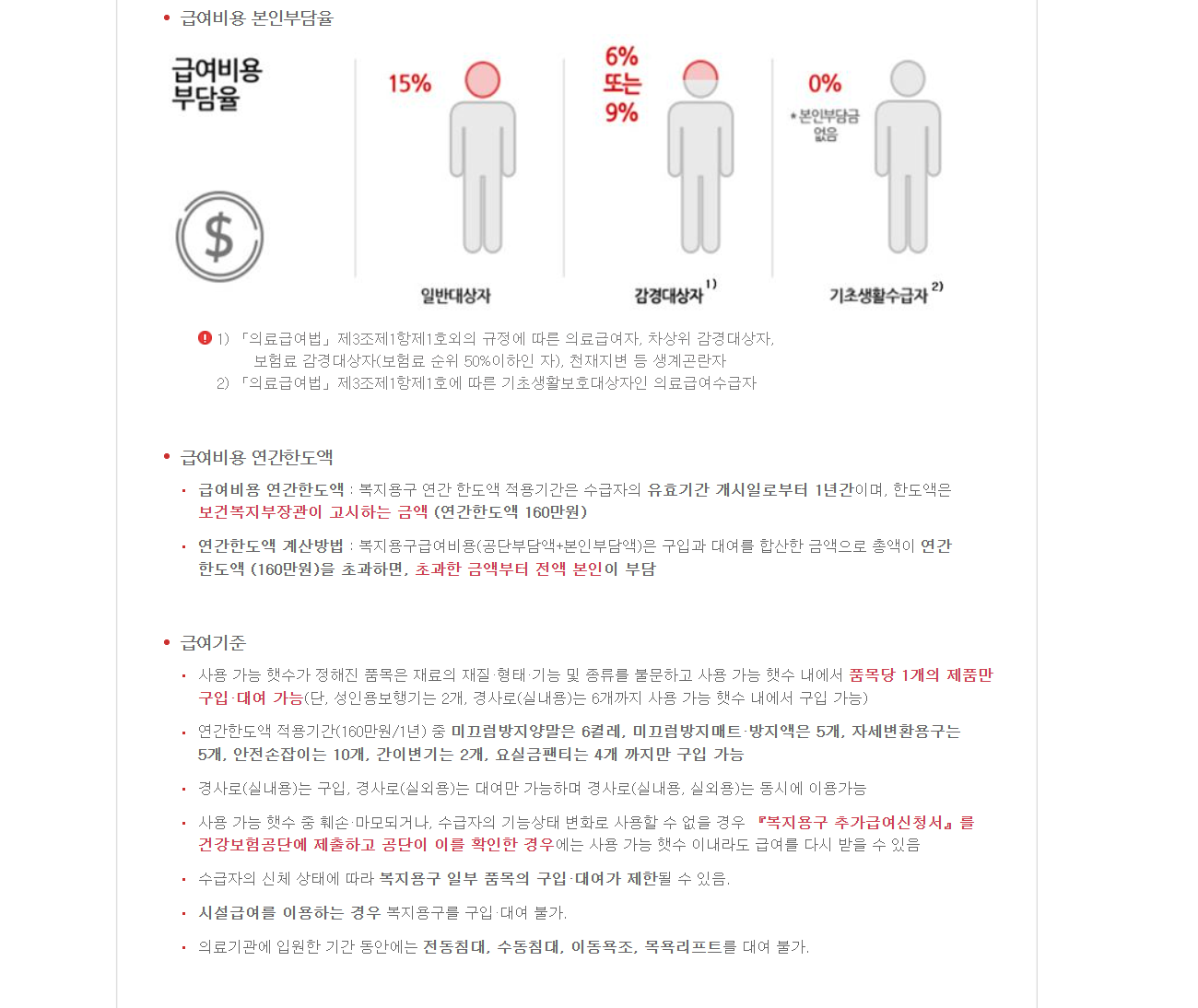 노인복지용구 지원은 연간 160만원 한도 내에서
